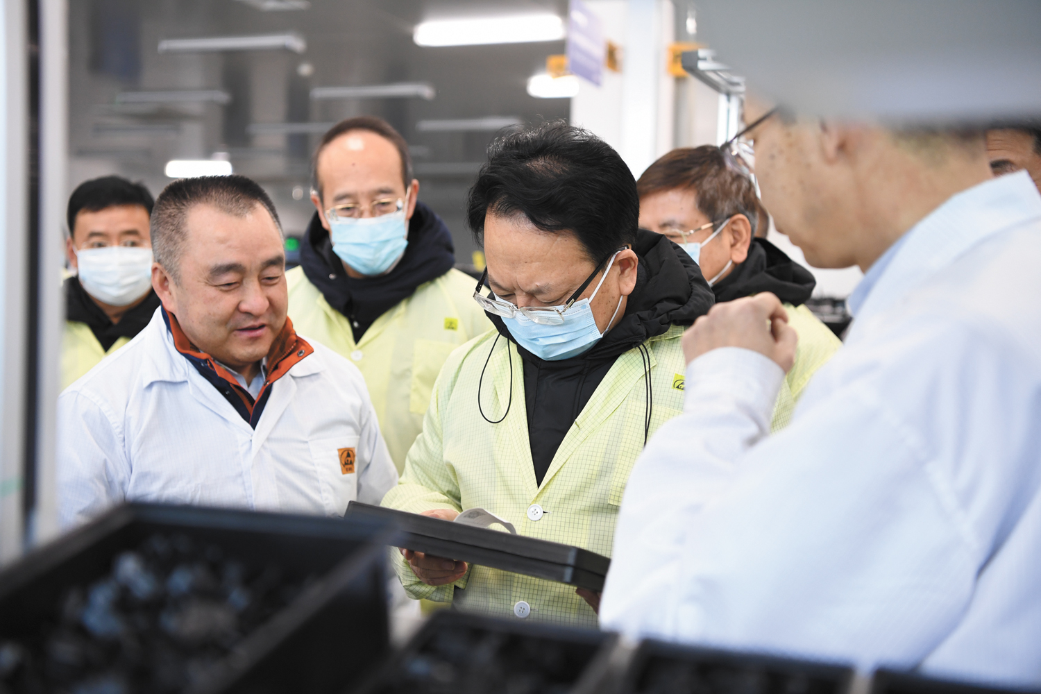 ?。保苍拢谷眨质∥瘯浘翱『5街袊鞴I(yè)集團東北工業(yè)集團有限公司,就深入貫徹黨的十九屆五中全會精神和習(xí)近平總書記視察吉林重要講話重要指示精神,全面落實省委十一屆八次全會精神,推動企業(yè)創(chuàng)新發(fā)展等情況進行調(diào)研。吉林省委常委、副省長吳靖平,吉林省委常委、省委秘書長胡家福,吉林省委常委、長春市委書記王凱一同調(diào)研。  圖為景俊海等在東北工業(yè)集團生產(chǎn)現(xiàn)場調(diào)研