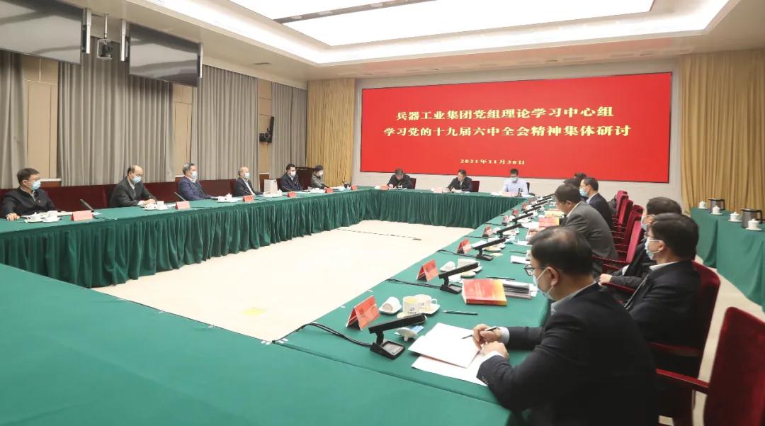 11月30日,中國(guó)兵器工業(yè)集團(tuán)有限公司黨組書(shū)記、董事長(zhǎng)焦開(kāi)河主持黨組理論學(xué)習(xí)中心組專(zhuān)題學(xué)習(xí)會(huì)議,深入學(xué)習(xí)貫徹黨的十九屆六中全會(huì)精神,深刻領(lǐng)會(huì)習(xí)近平總書(shū)記在六中全會(huì)上的重要講話精神和《中共中央關(guān)于黨的百年奮斗重大成就和歷史經(jīng)驗(yàn)的決議》,研討貫徹落實(shí)的思路措施。中央企業(yè)黨史學(xué)習(xí)教育第一指導(dǎo)組副組長(zhǎng)杜國(guó)功列席并作指導(dǎo)講話,集團(tuán)公司總經(jīng)理、黨組副書(shū)記、董事劉大山,黨組副書(shū)記、董事周艦,黨組成員、總會(huì)計(jì)師張華,紀(jì)檢監(jiān)察組組長(zhǎng)、黨組成員陳學(xué)釧,黨組成員、副總經(jīng)理李春建、植玉林、閆哲參加學(xué)習(xí)。