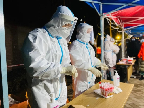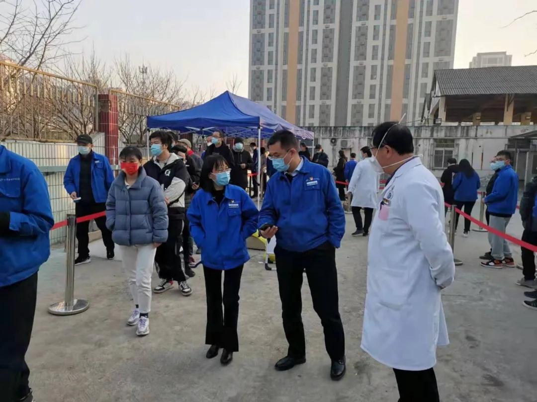 北化研究院集團西安惠安公司為避免社區(qū)臨時出入人員與上班職工的接觸風險,聯(lián)系地方政府開辟綠色通道,由公司派志愿者值班輪守。為解決部分職工就餐問題,惠安賓館為職工開辟就餐綠色通道,嚴格按照防疫要求,在不同地方分批領餐,杜絕聚集?;莅册t(yī)院承擔9個核酸采集點的核酸采集工作,醫(yī)護人員放棄休息,在冬日的寒風中連續(xù)五天奮戰(zhàn)在抗疫一線,共計采集核酸檢測樣本7萬人次。