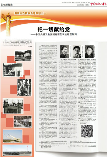 1月6日,貫徹落實(shí)中央企業(yè)黨的建設(shè)工作座談會(huì)精神專題推進(jìn)會(huì)在京召開。會(huì)上,中國兵器工業(yè)集團(tuán)有限公司等5家單位作了“賡續(xù)央企精神血脈”主題宣講報(bào)告。3月21日,《中國組織人事報(bào)》刊發(fā)賡續(xù)央企精神血脈系列之一——《把一切獻(xiàn)給黨——中國兵器工業(yè)集團(tuán)有限公司主題宣講詞》。