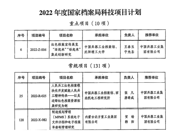 兵器工業(yè)集團(tuán)有關(guān)單位獲批國家檔案局三項(xiàng)科技項(xiàng)目 |