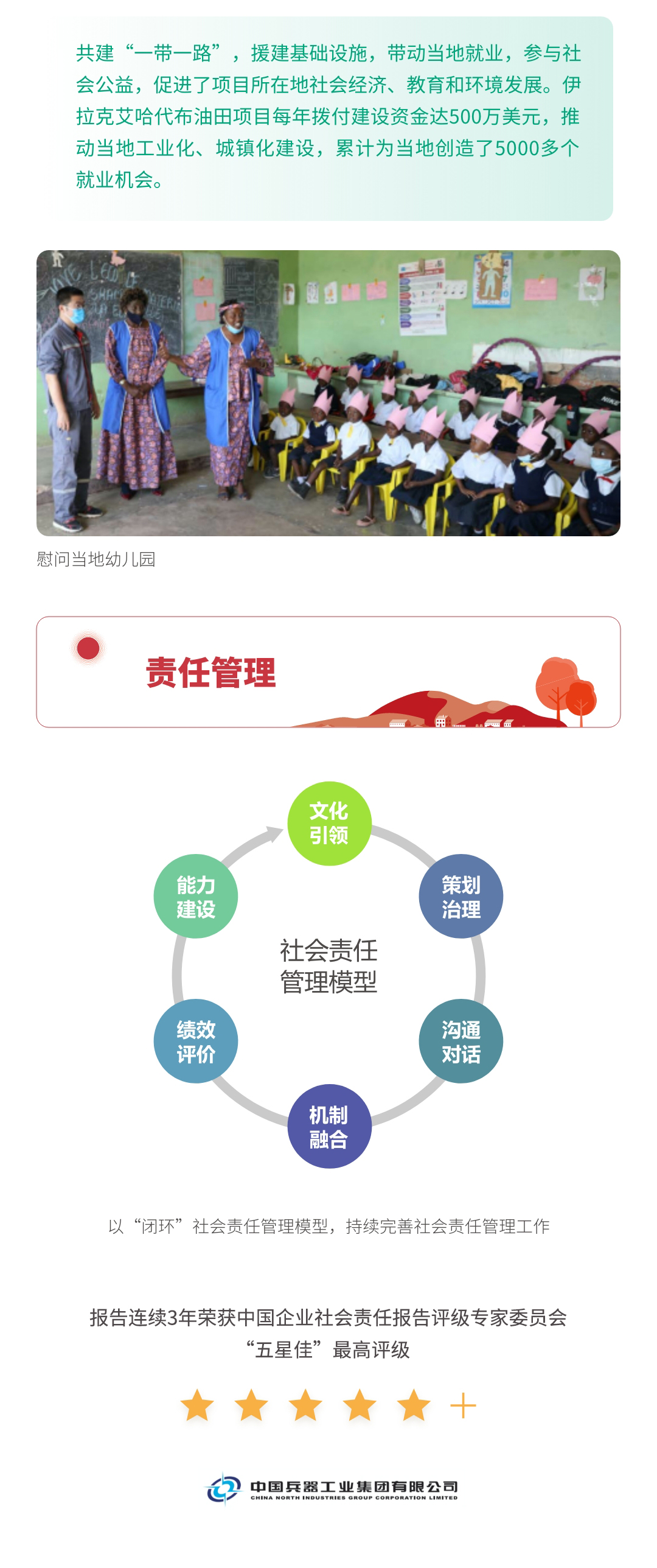 近日,兵器工業(yè)集團正式發(fā)布第十三份年度社會責(zé)任報告——《中國兵器工業(yè)集團有限公司2021年社會責(zé)任報告》,以“用心守護和平、用力爭創(chuàng)一流、用情溫暖社會”為主題,從恪守強軍首責(zé)、服務(wù)經(jīng)濟建設(shè)、共創(chuàng)美好生活三個維度,向社會全面披露2021年度履責(zé)實踐和履責(zé)業(yè)績?!秷蟾妗愤B續(xù)第三年獲得中國企業(yè)社會責(zé)任報告評級專家委員會“五星佳”評級,兵器工業(yè)集團成為軍工行業(yè)唯一連續(xù)11年獲得五星及五星佳最高評級的企業(yè)。 一圖解碼兵器工業(yè)的“責(zé)任力量” |