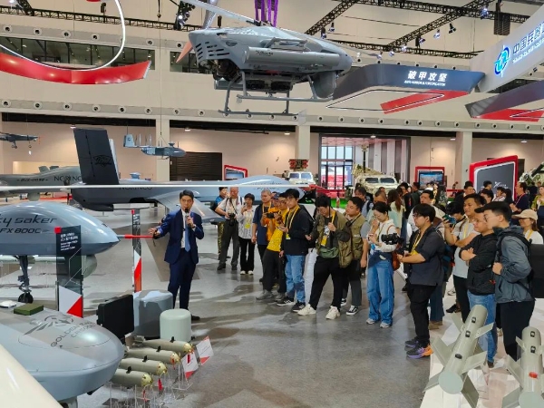 本屆航展,兵器工業(yè)集團(tuán)著重展示數(shù)智賦能軍貿(mào)合成旅作戰(zhàn)體系?!疤金^”現(xiàn)場(chǎng),新聞發(fā)言人向記者團(tuán)介紹了本屆航展集團(tuán)公司參展亮點(diǎn)、明星產(chǎn)品和技術(shù)發(fā)展成果,并對(duì)VT5-U輕型坦克、VU-T10無人平臺(tái)、SR5多管火箭炮、金雕CR500B無人直升機(jī)系統(tǒng)、指揮控制中心等參展裝備和技術(shù)作了重點(diǎn)介紹,媒體記者進(jìn)一步了解了裝備的性能和特點(diǎn)。在無人火力展區(qū),記者團(tuán)還走進(jìn)仿真訓(xùn)練體驗(yàn)區(qū),親身“使用”單兵武器,體驗(yàn)裝備性能。