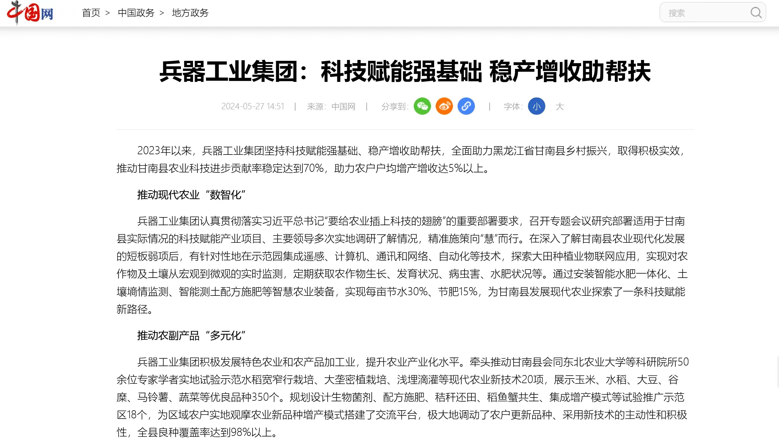 中國網(wǎng)報道兵器工業(yè)集團(tuán)科技賦能 助力黑龍江省甘南縣鄉(xiāng)村振興 |