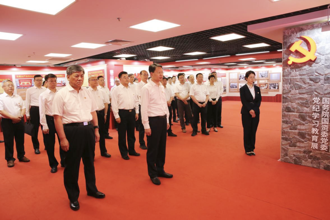 黨組同志認(rèn)真聆聽講解,集體參觀了“政治鑄魂——習(xí)近平總書記重要論述”“紀(jì)法樹威——黨規(guī)黨紀(jì)相關(guān)要求”“傳承增信——黨的優(yōu)良傳統(tǒng)”“嚴(yán)管促行——國務(wù)院國資委黨委紀(jì)律建設(shè)成效”“警示立戒——反面典型案例”“實干建功——工作展望”6個篇章,通過觀看圖文、視頻等形式多樣的展品展示,進(jìn)一步學(xué)習(xí)領(lǐng)會習(xí)近平總書記關(guān)于國資央企的重要指示批示精神和黨的紀(jì)律建設(shè)的重要論述,學(xué)習(xí)把握《中國共產(chǎn)黨紀(jì)律處分條例》新增、修訂內(nèi)容,全面了解國務(wù)院國資委黨委強化政治引領(lǐng)、加強政治監(jiān)督、深化紀(jì)律建設(shè)、抓實巡視工作等方面的做法舉措,集中觀看近年來國資央企發(fā)生的具有代表性的違規(guī)違紀(jì)案例,深刻領(lǐng)悟以習(xí)近平同志為核心的黨中央堅持黨要管黨、全面從嚴(yán)治黨取得的歷史性成就,全面感受國務(wù)院國資委黨委全面從嚴(yán)治黨取得的重要成果。