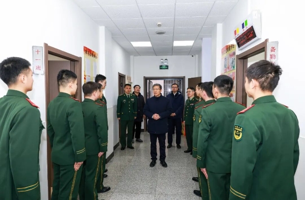 周治平走訪了作戰(zhàn)勤務(wù)值班室、營房等,詳細(xì)了解春節(jié)期間勤務(wù)安排、生活保障和防寒保暖措施等情況,對官兵的堅(jiān)守、付出和奉獻(xiàn)予以高度贊揚(yáng)。周治平表示,執(zhí)勤崗位責(zé)任重大、工作辛苦,執(zhí)勤武警官兵始終牢記職責(zé)、忠誠履職、紀(jì)律嚴(yán)明、作風(fēng)優(yōu)良,以實(shí)際行動踐行了軍民魚水情、軍地一家親,贏得了兵器干部職工的一致好評,為兵器工業(yè)集團(tuán)改革發(fā)展穩(wěn)定工作作出了重要貢獻(xiàn)。集團(tuán)公司有關(guān)部門要強(qiáng)化服務(wù)保障、筑牢軍地情誼,用心用情用力為官兵創(chuàng)造良好的學(xué)習(xí)生活訓(xùn)練條件。 執(zhí)勤武警負(fù)責(zé)人衷心感謝集團(tuán)公司一直以來的關(guān)心支持,表示廣大官兵將認(rèn)真踐行武警部隊(duì)優(yōu)良傳統(tǒng),聽黨指揮、不辱使命、刻苦訓(xùn)練、增強(qiáng)本領(lǐng),以更加飽滿的熱情投入到新的一年執(zhí)勤工作中,為維護(hù)兵器工業(yè)保衛(wèi)安全穩(wěn)定貢獻(xiàn)更大力量。(綜合管理部)